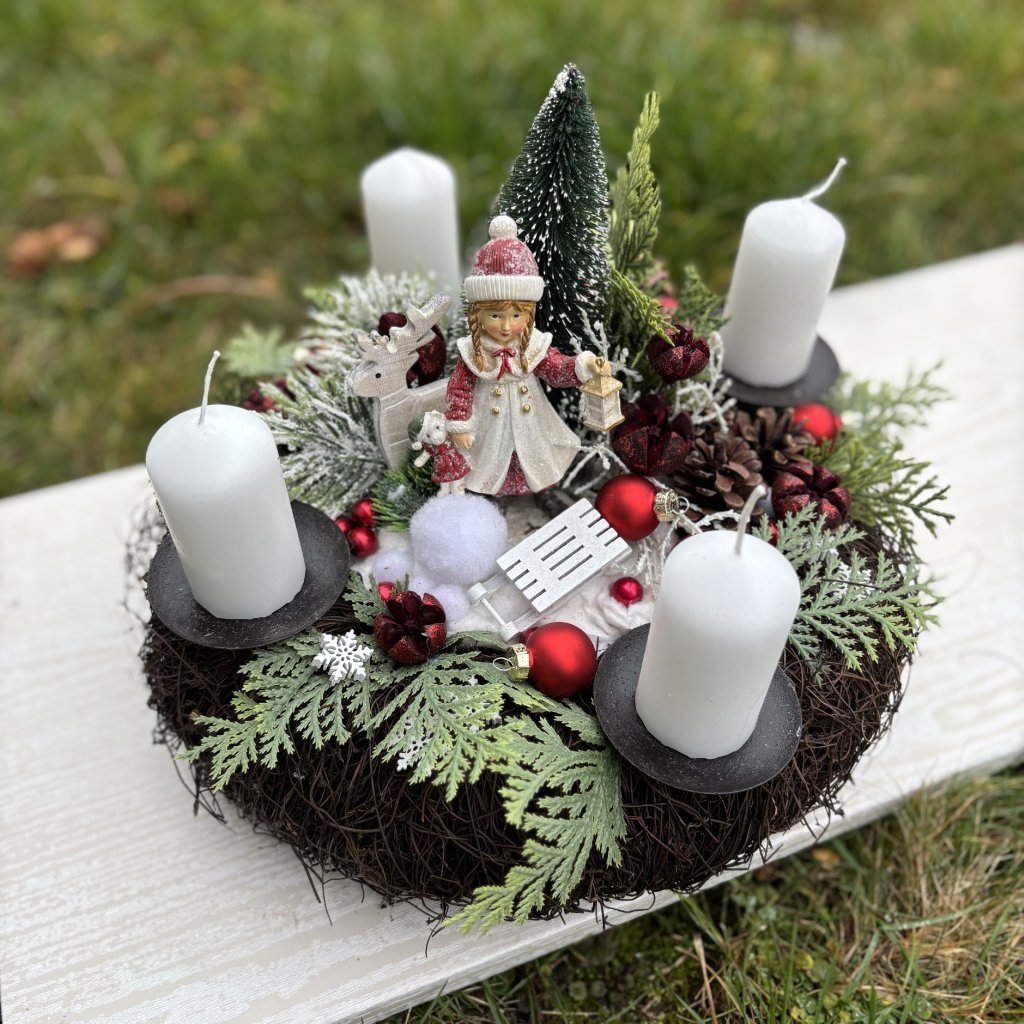 Mimo to najdete na našem eshopu: věnec na dveře, vánoční věnec na dveře, moderní adventní věnce, podzimní věnec na dveře, jarní věnec na dveře, dušičkové dekorace, celoroční věnce a dekorace, moderní věnce a dekorace na stůl, výroba a materiál na výrobu věnců a dekorací, floristické potřeby, bytové doplňky atd.