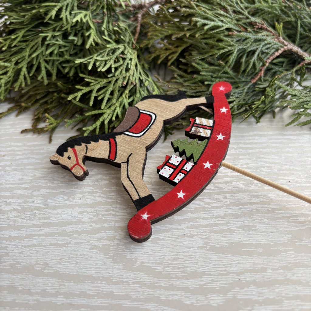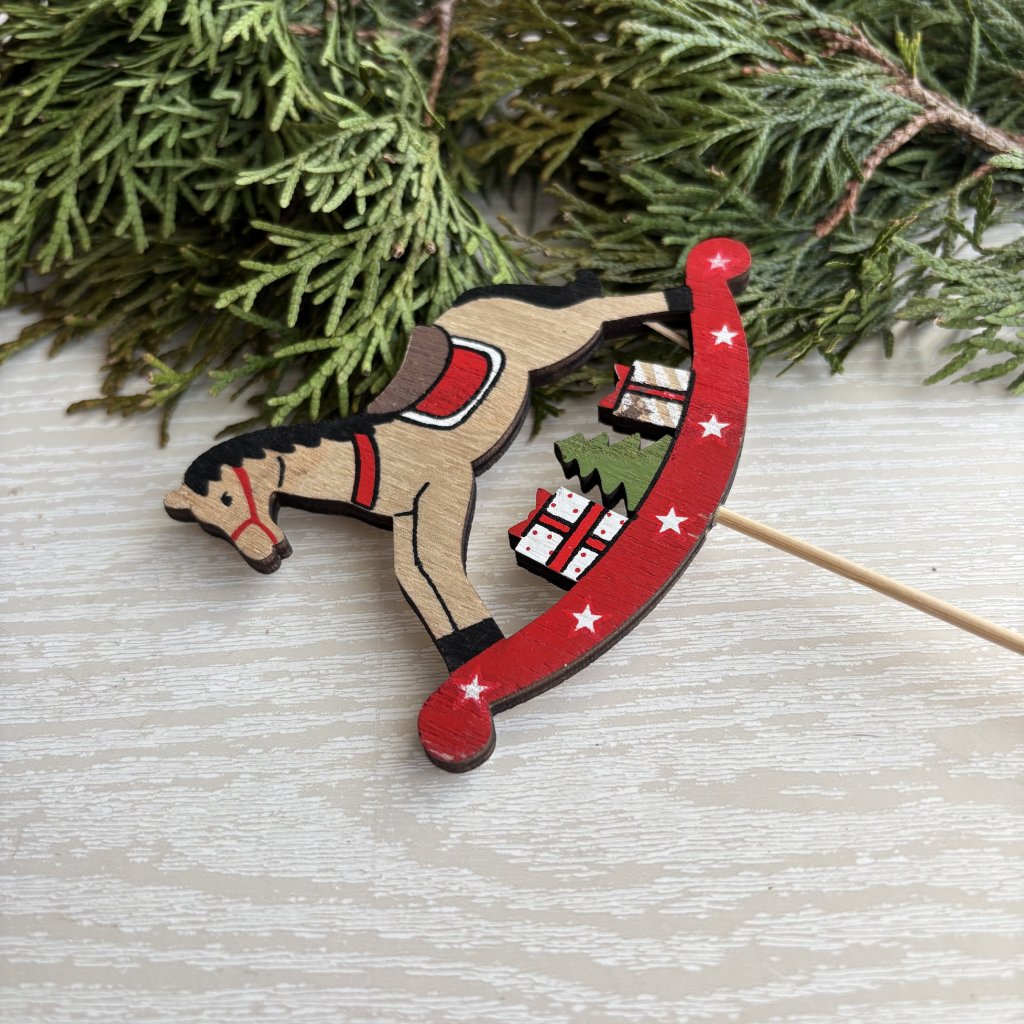 Závěs brusle dřevo červe.+bílé 7,5cm 2ks - kód: VMX41