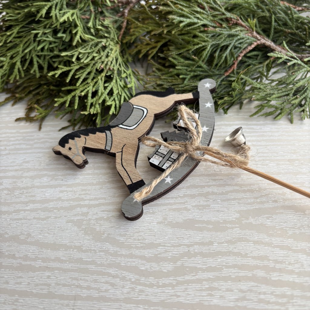 Závěs brusle dřevo červe.+bílé 7,5cm 2ks - kód: VMX41