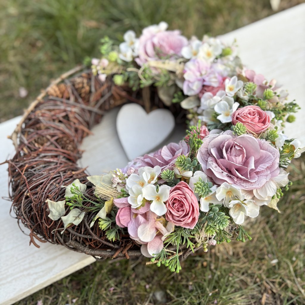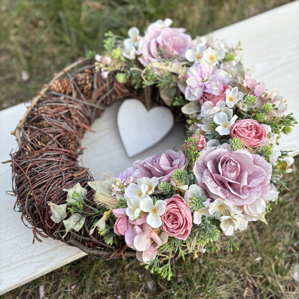 Dekorační věnec na dveře s květinami - kód: LET 1
