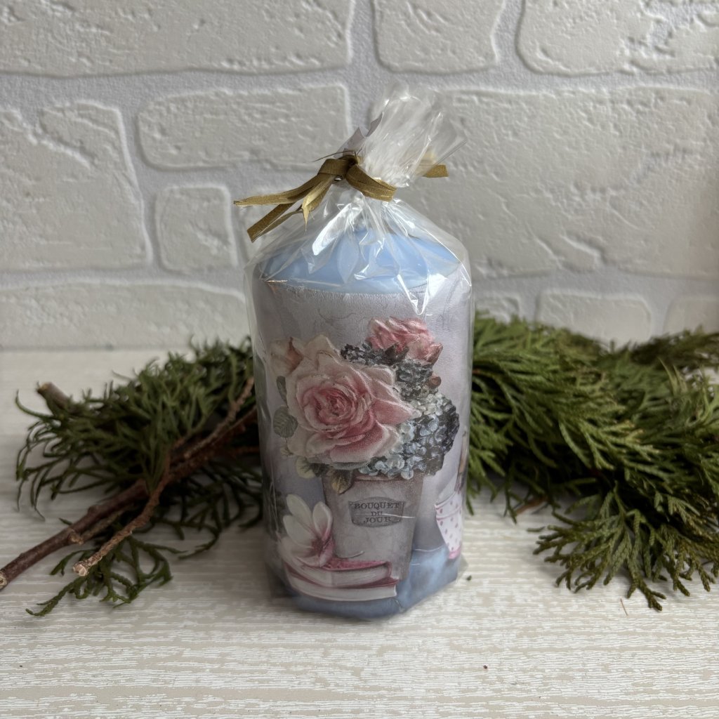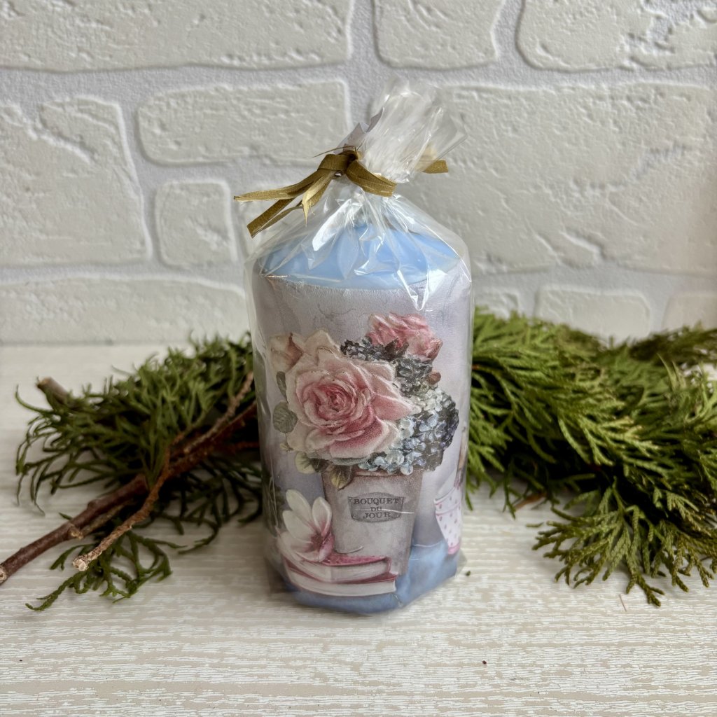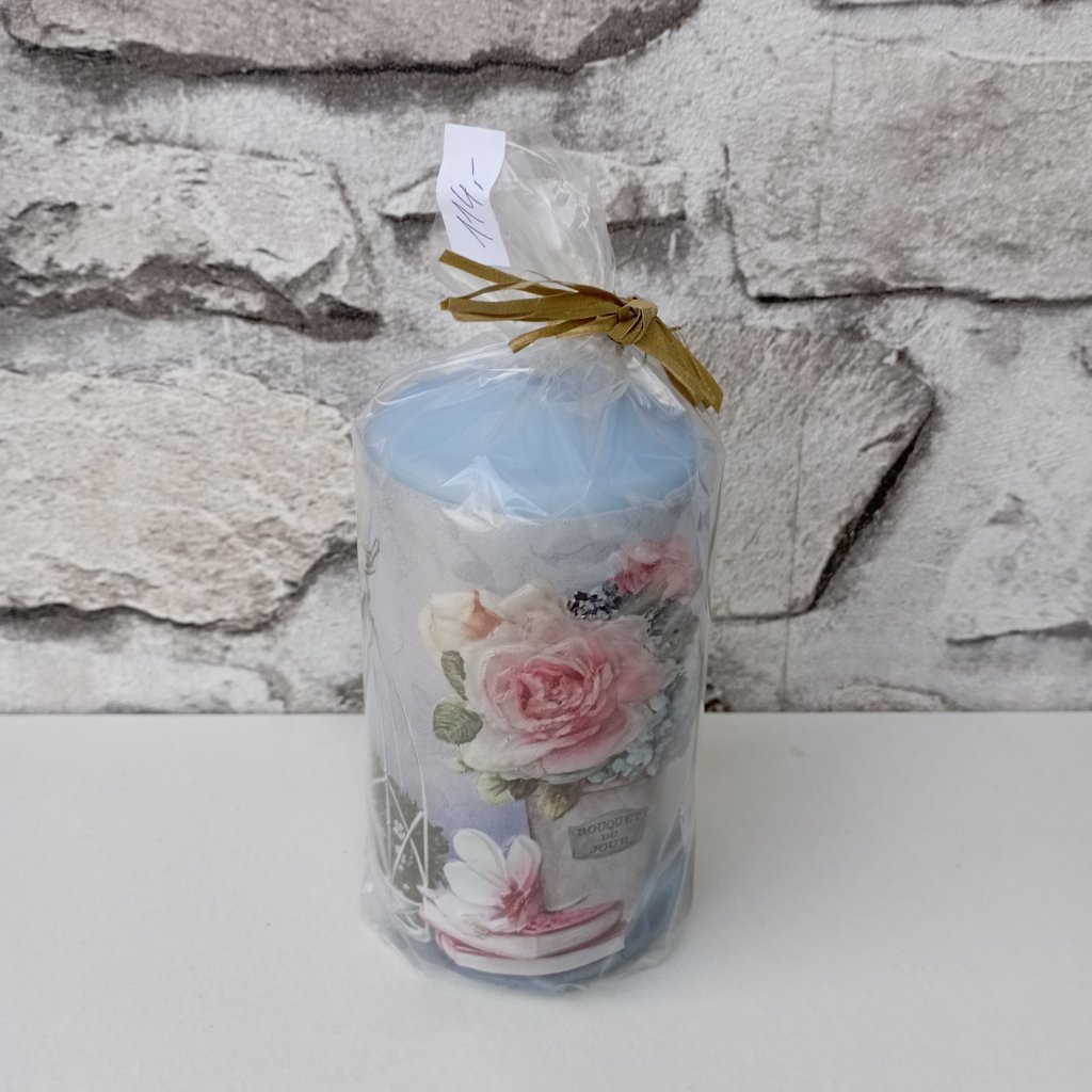 Svíčka modrá s růžemi
