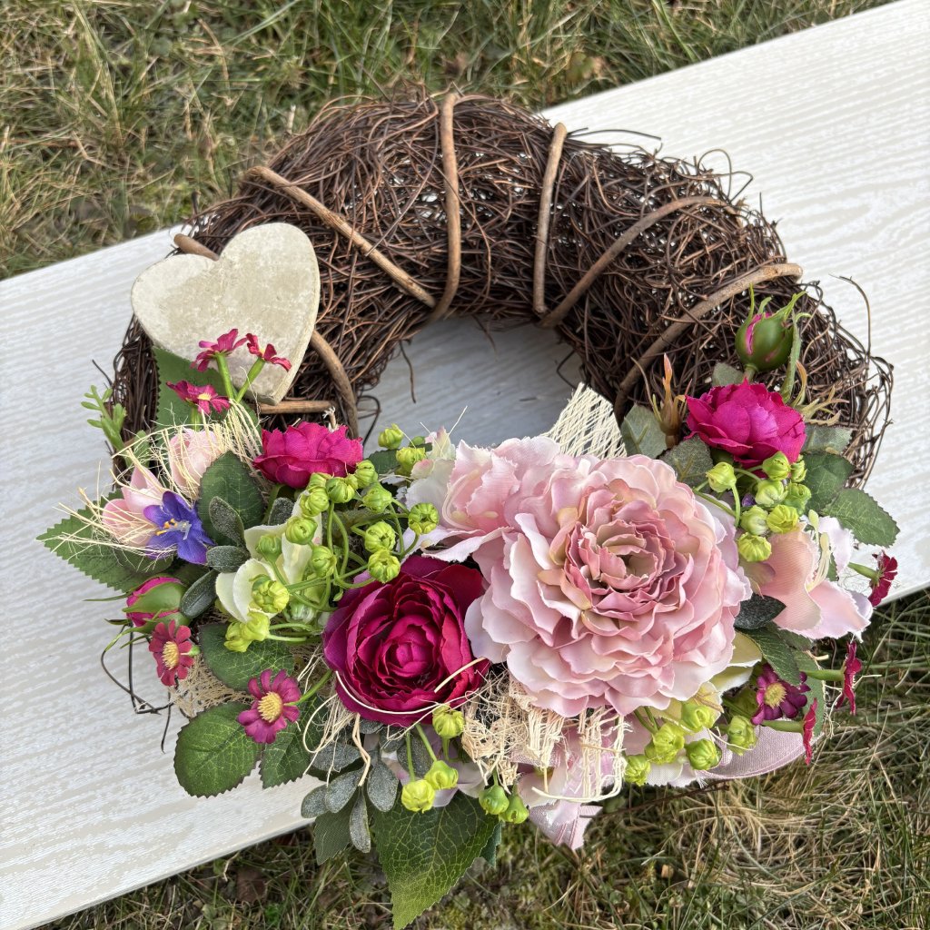 Celoroční dekorační věnec s Pivoňkami - kód: LET 3