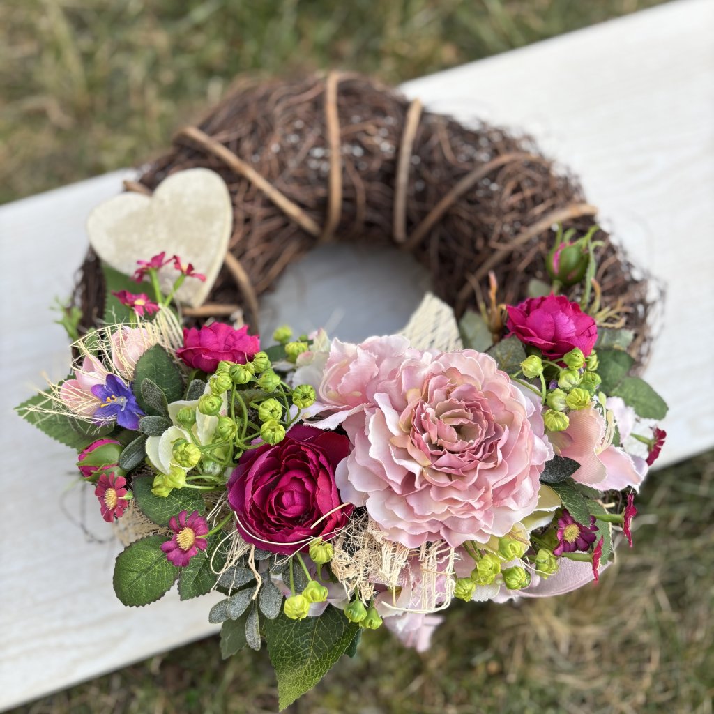 Dekorační věnec na dveře s květinami - kód: LET 1