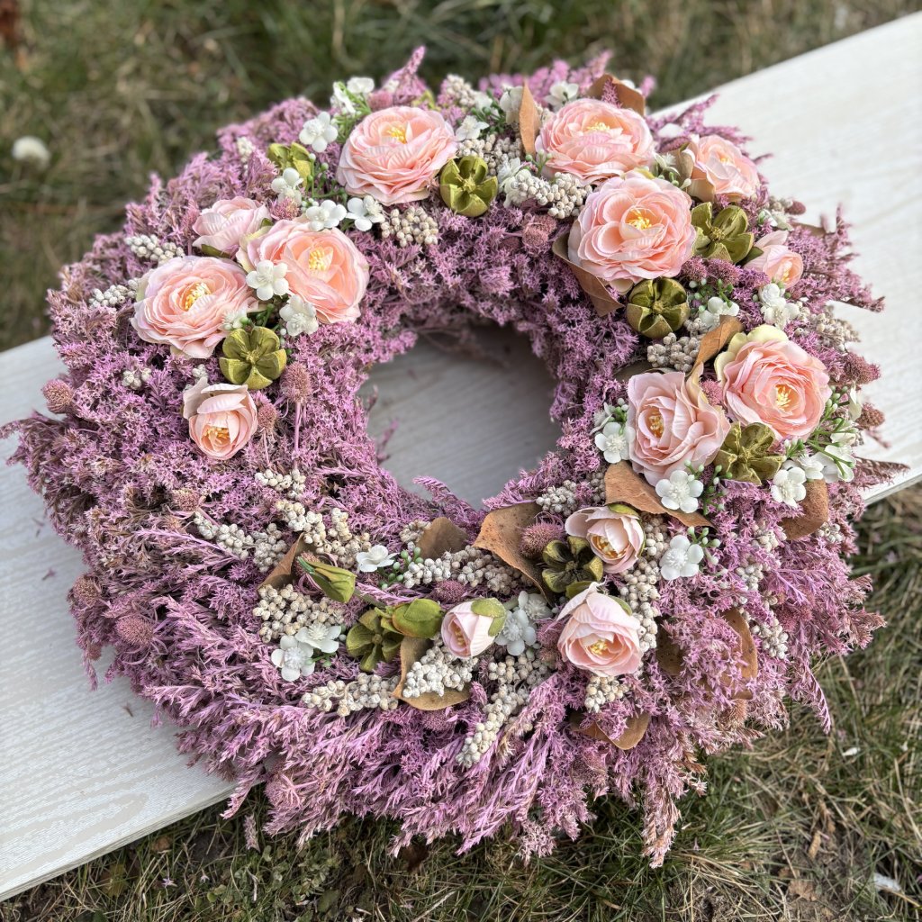 Celoroční dekorační věnec s Pivoňkami - kód: LET 3